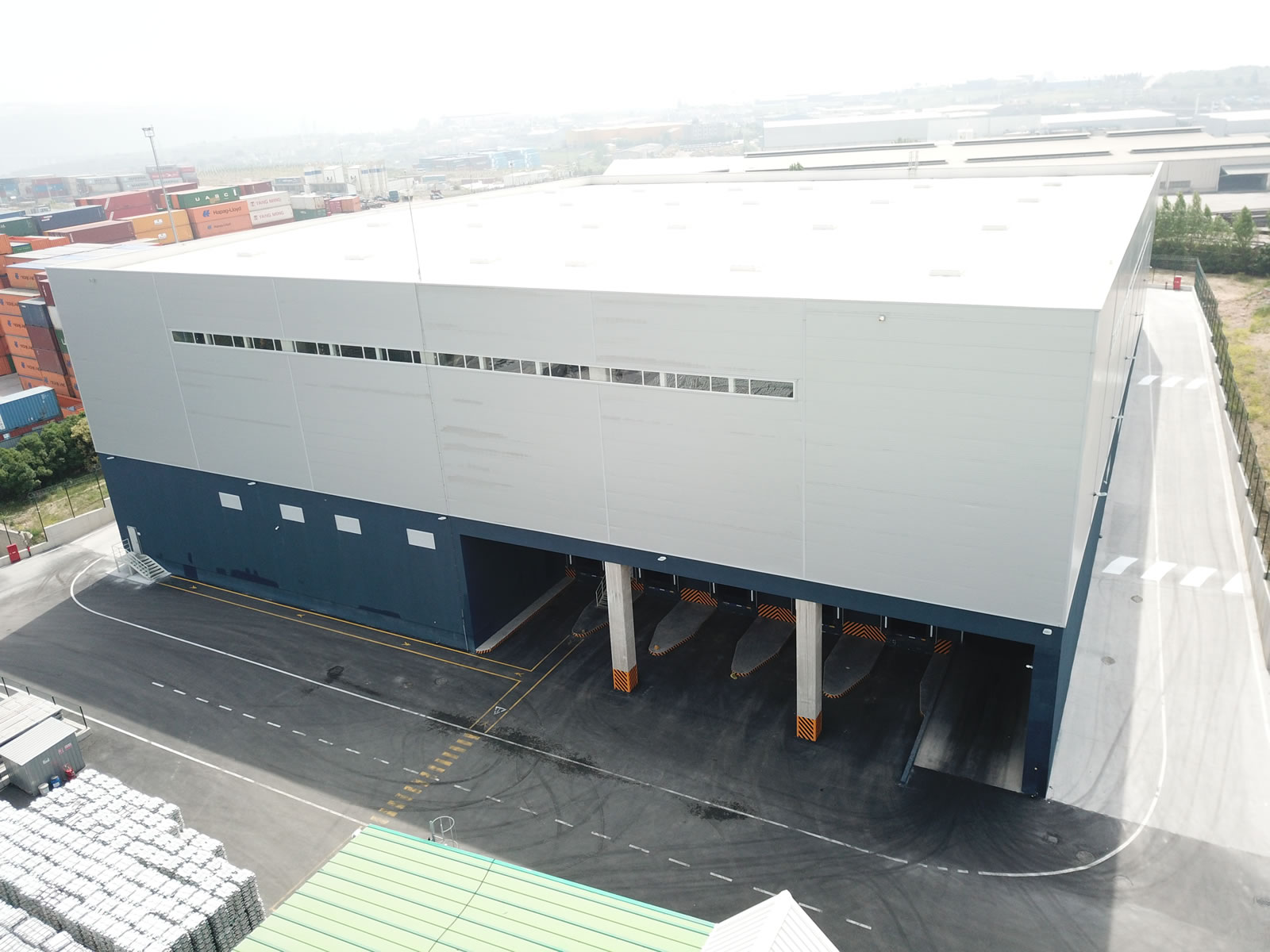 Toplam 8.600 m² kapalı alana sahip projede; depo alanları, operasyonel hacimler ve destek birimleri fonksiyonel ve verimli bir yaklaşımla inşa edilmiştir. Yapıda betonarme taşıyıcı sistem kullanılarak, dayanıklı ve uzun ömürlü bir lojistik tesis oluşturulmuştur.
